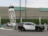 ・パーク入口にはPOLICEの臨時監視所が設置されている。