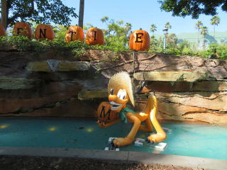 ・ホーンテドマンション。広間のパーティーの皿がミッキーになっていて、レオタの首が空中浮遊。最後の連れて帰るゴーストがハローウィン土産になっていた。